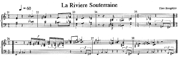 which is the BACH motive transposed with a whole tone. In "La Riviere Souterraine"